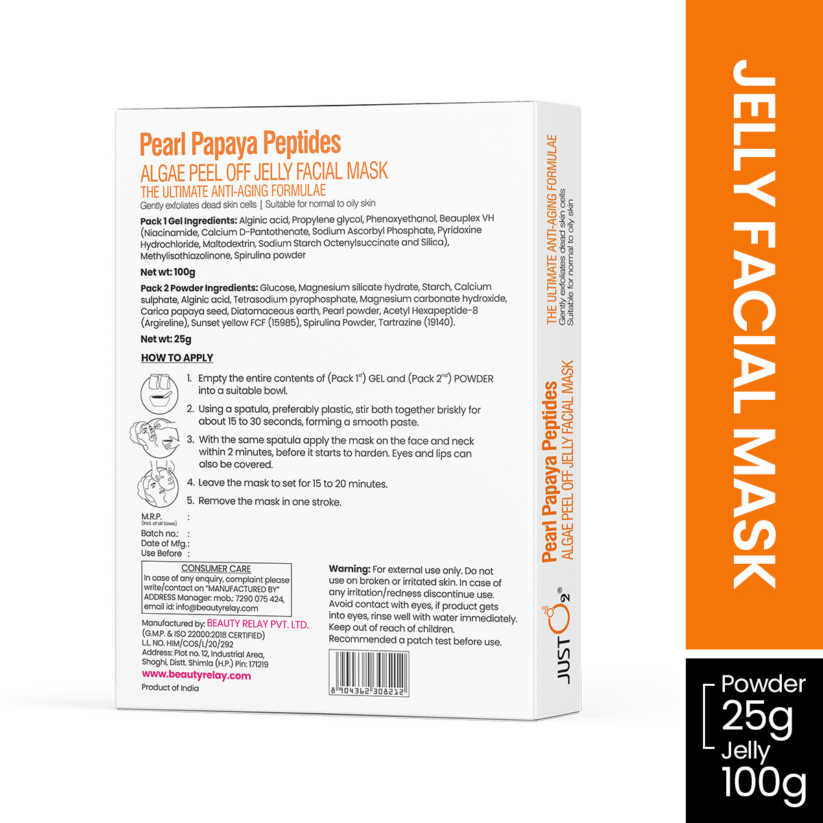 Turn back time with Beauty Relay London's Pearl, Papaya & Peptides Algae Peel-Off Jelly Facial Mask, a rejuvenating treatment designed to restore a youthful, glowing complexion. This luxurious mask blends the brightening power of papaya, the radiance-boosting benefits of pearl, and the anti-aging peptides to hydrate, smooth, and refresh your skin.