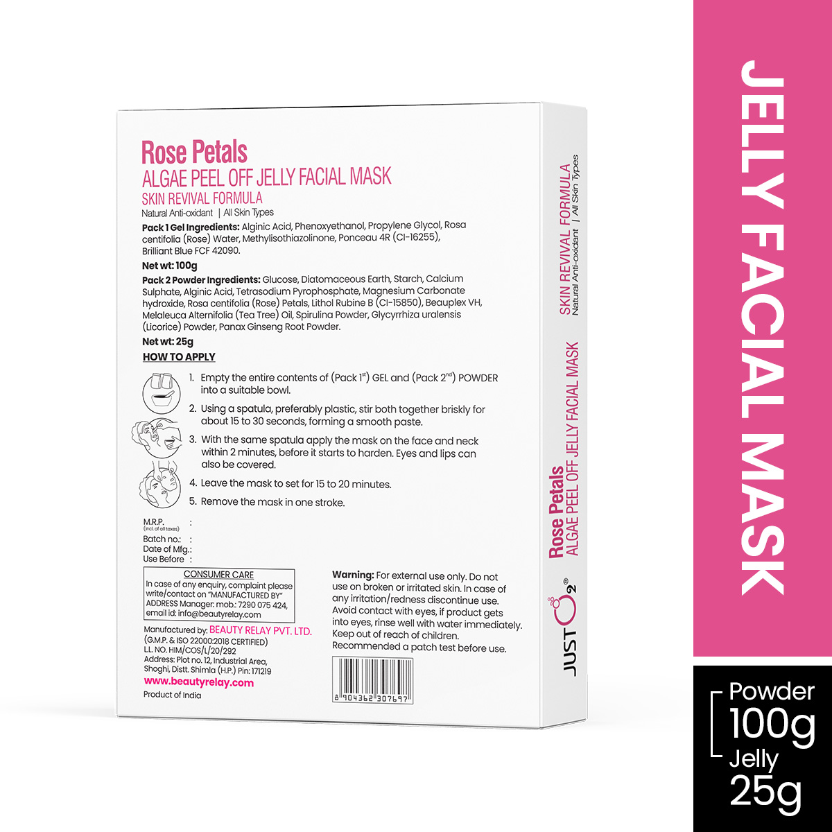 Ans: The Rose Petals Algae Peel Off Jelly Facial Mask utilizes a unique blend of rose petals and algae extracts to gently exfoliate the skin, removing dead cells and impurities, while promoting skin rejuvenation and hydration.