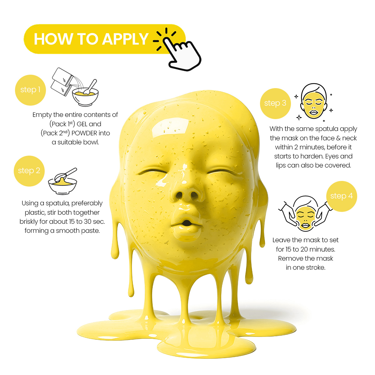 STEP 3 - With the same spatula apply the mask on the face and neck within 2 minutes, before it starts to harden. Eyes and lips can alos be covered.