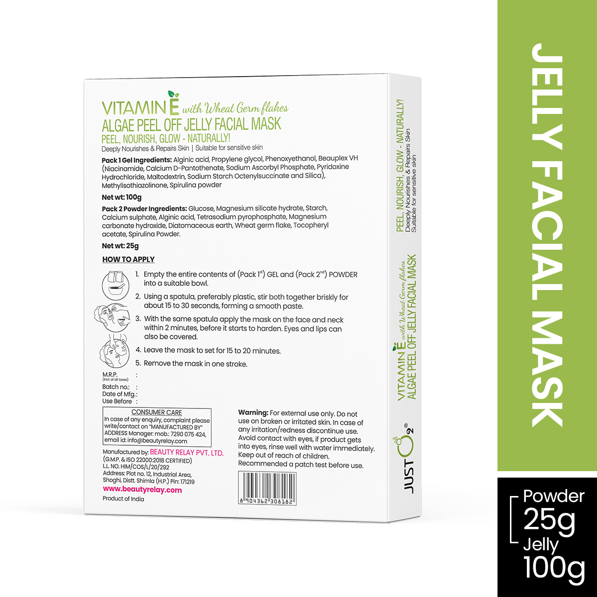 Pamper your skin with Beauty Relay London's Vitamin E Algae Peel-Off Jelly Facial Mask, designed to give you soft, smooth, and supple skin that feels as delicate as a baby’s. Packed with nourishing Wheat Germ Flake, Vitamin E (Tocopheryl Acetate), and the revitalizing Beauplex VH complex, this mask deeply hydrates and restores your skin’s natural softness.